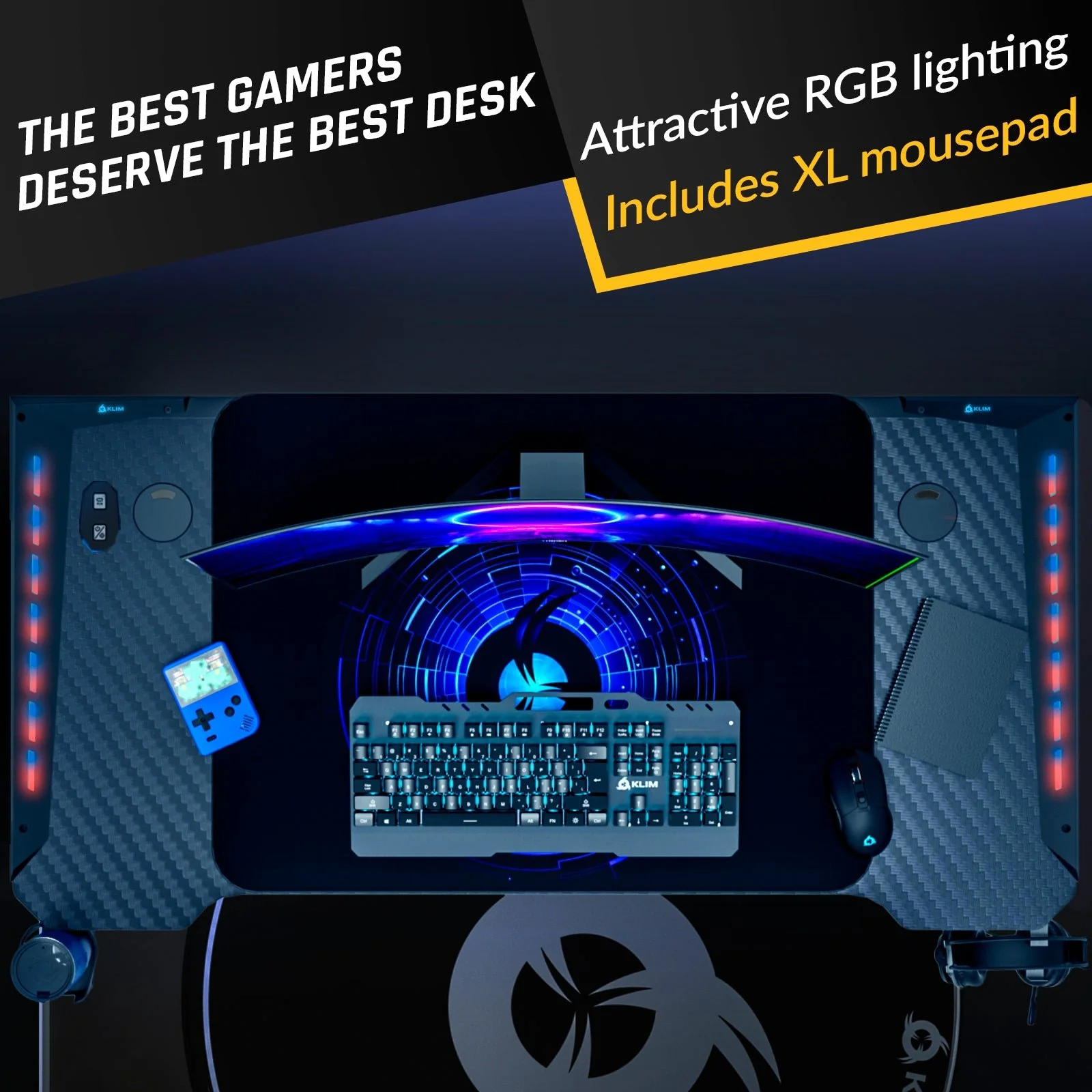 - PLAY YOUR BEST GAME. Playing on a good desk is critical to your performance. Its stylish design, black color and adjustable RGB lights makes it is the perfect choice to level up your gaming setup. We include a free XL mousepad so you can play in the best conditions possible. Once you start working and gaming on this desk, you'll be wishing you got it earlier! Perfect for adults, kids and teenagers!